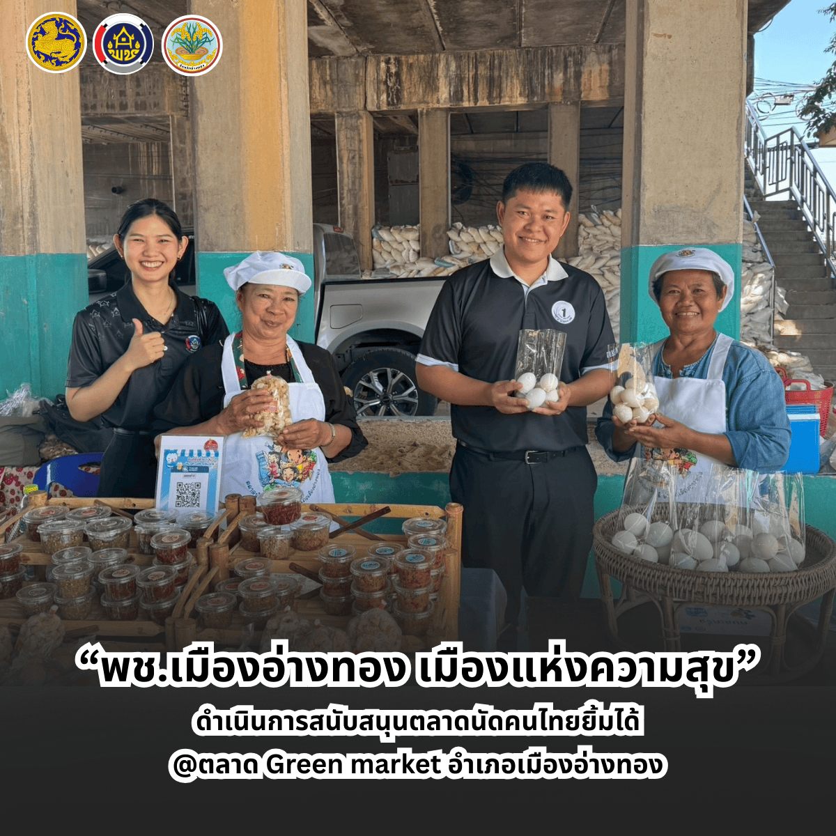 “พช.เมืองอ่างทอง เมืองแห่งความสุข” ดำเนินการสนับสนุนตลาดนัดคนไทยยิ้มได้ @ตลาด Green market อำเภอเมืองอ่างทอง