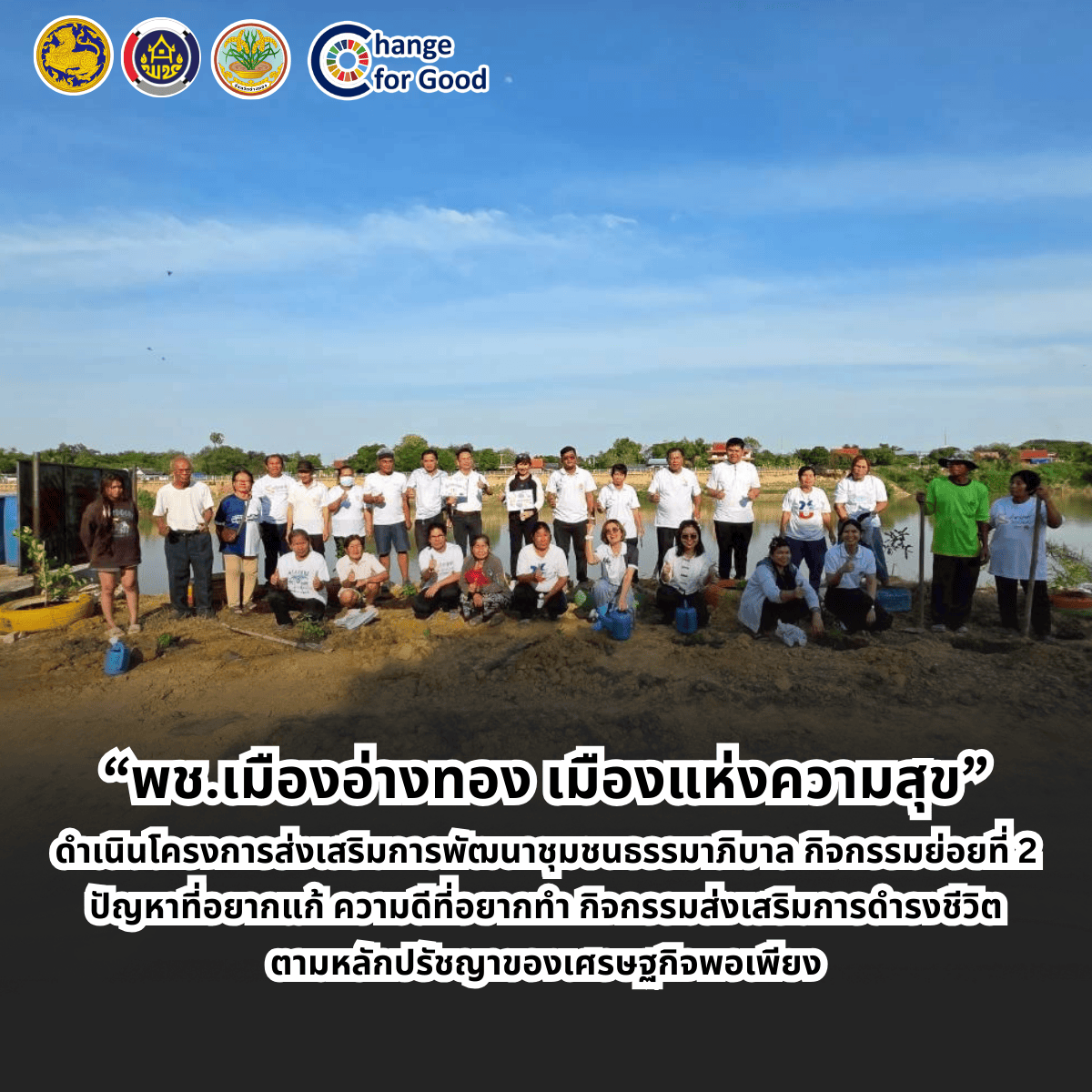 “พช.เมืองอ่างทอง เมืองแห่งความสุข” ดำเนินโครงการส่งเสริมการพัฒนาชุมชนธรรมาภิบาล กิจกรรมย่อยที่ 2 ปัญหาที่อยากแก้ ความดีที่อยากทำ กิจกรรมส่งเสริมการดำรงชีวิตตามหลักปรัชญาของเศรษฐกิจพอเพียง