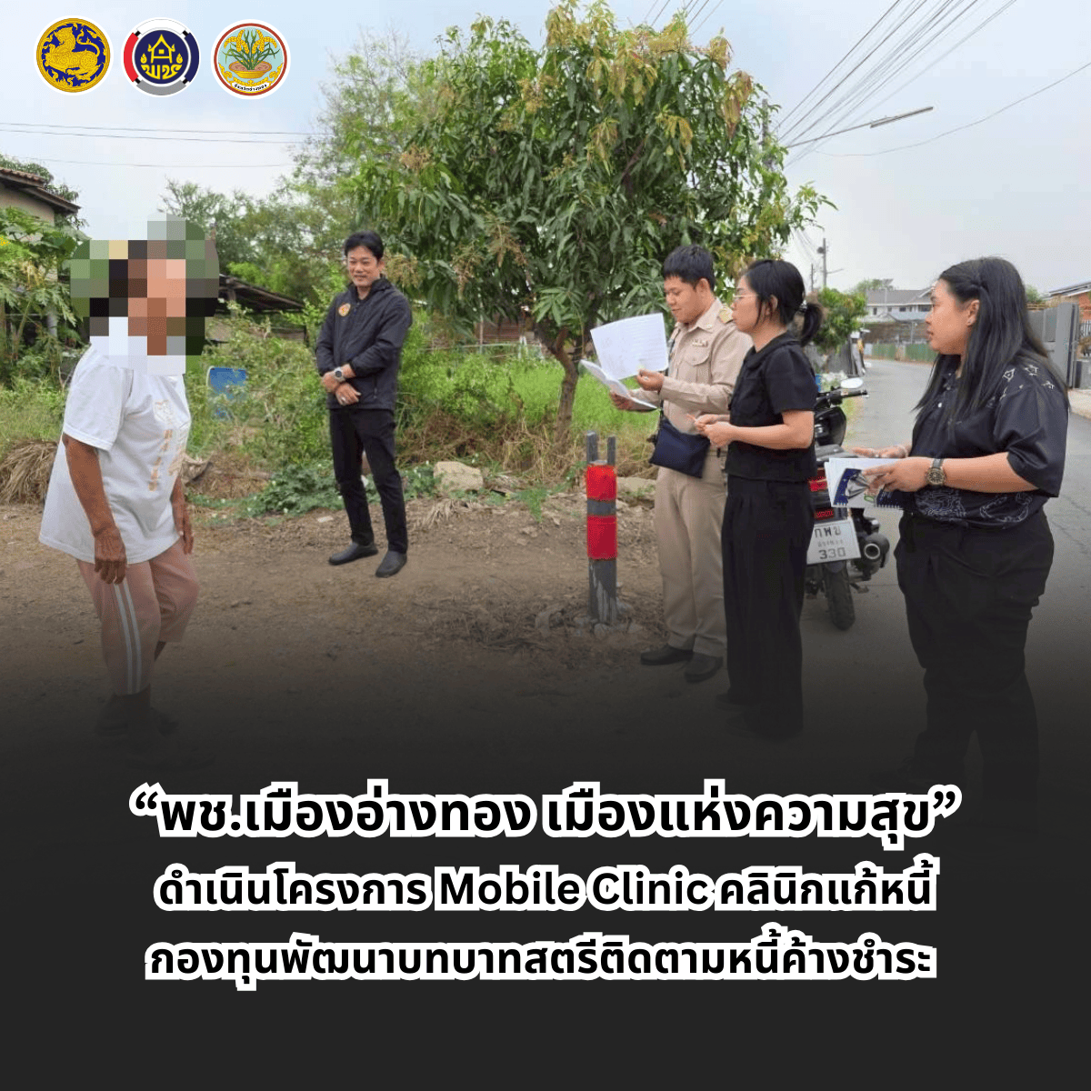 “พช.เมืองอ่างทอง เมืองแห่งความสุข” ดำเนินโครงการ Mobile Clinic คลินิกแก้หนี้กองทุนพัฒนาบทบาทสตรีติดตามหนี้ค้างชำระ