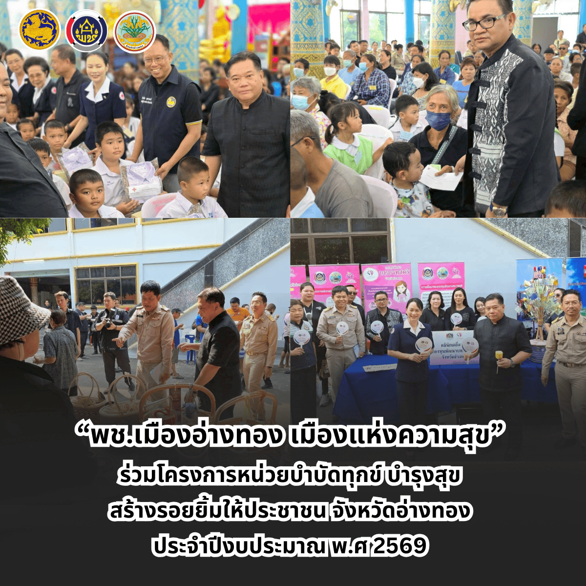“พช.เมืองอ่างทอง เมืองแห่งความสุข” ร่วมโครงการ ”หน่วยบำบัดทุกข์ บำรุงสุข สร้างรอยยิ้มให้ประชาชน” จังหวัดอ่างทอง ประจำปีงบประมาณ พ.ศ 2569