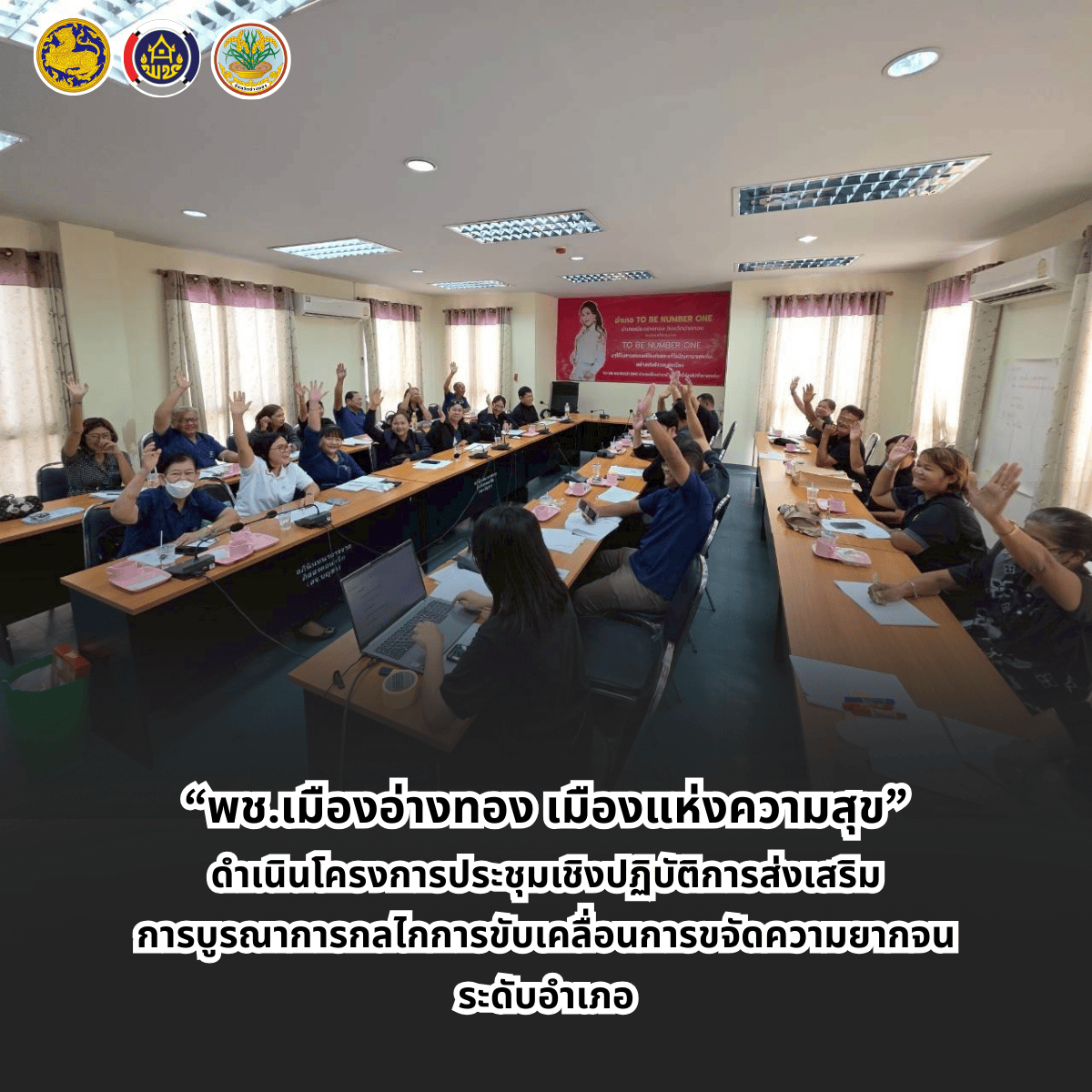“พช.เมืองอ่างทอง เมืองแห่งความสุข” ดำเนินโครงการประชุมเชิงปฏิบัติการส่งเสริมการบูรณาการกลไกการขับเคลื่อนการขจัดความยากจน ระดับอำเภอ