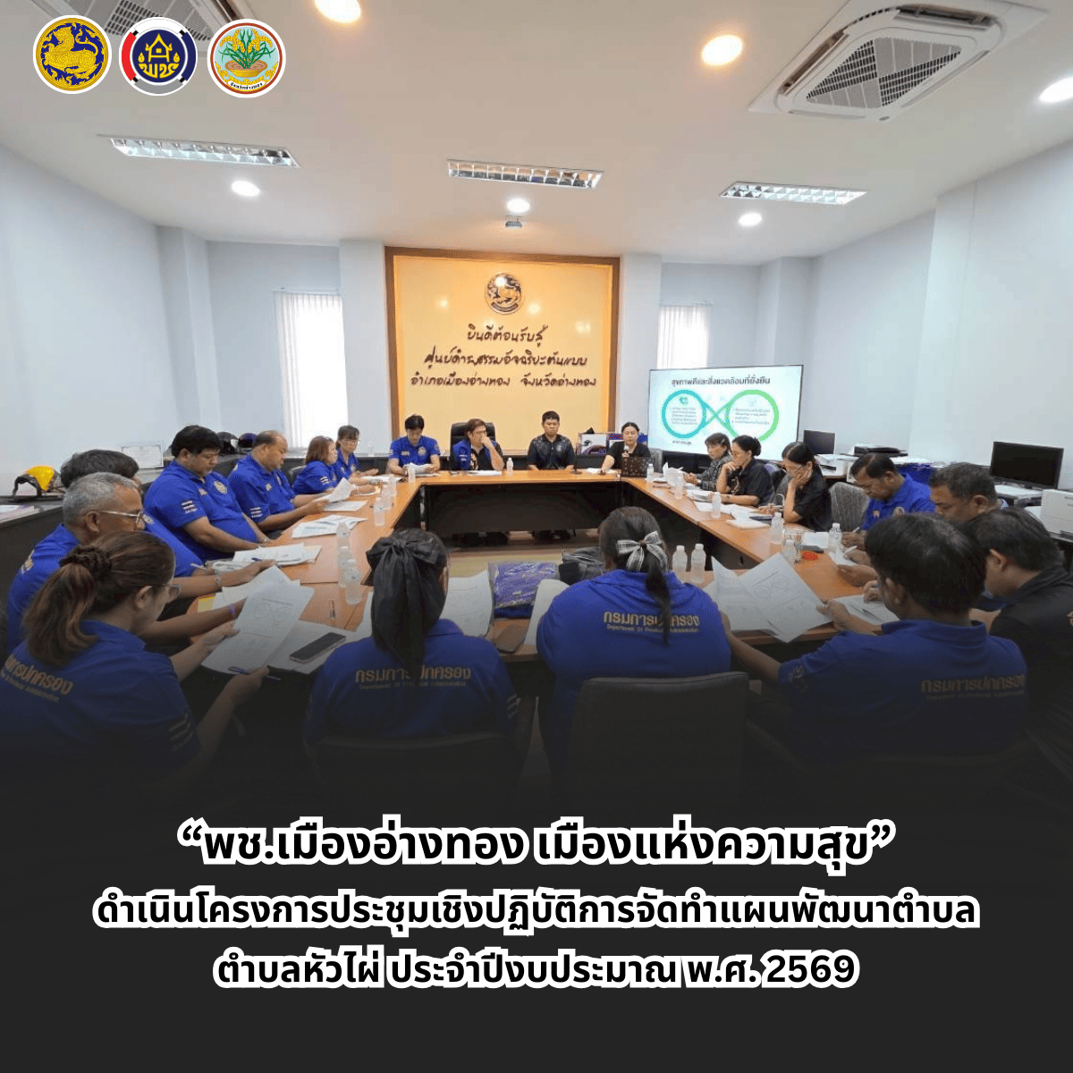 “พช.เมืองอ่างทอง เมืองแห่งความสุข” ดำเนินโครงการประชุมเชิงปฏิบัติการจัดทำแผนพัฒนาตำบล ตำบลหัวไผ่ ประจำปีงบประมาณ พ.ศ. 2569