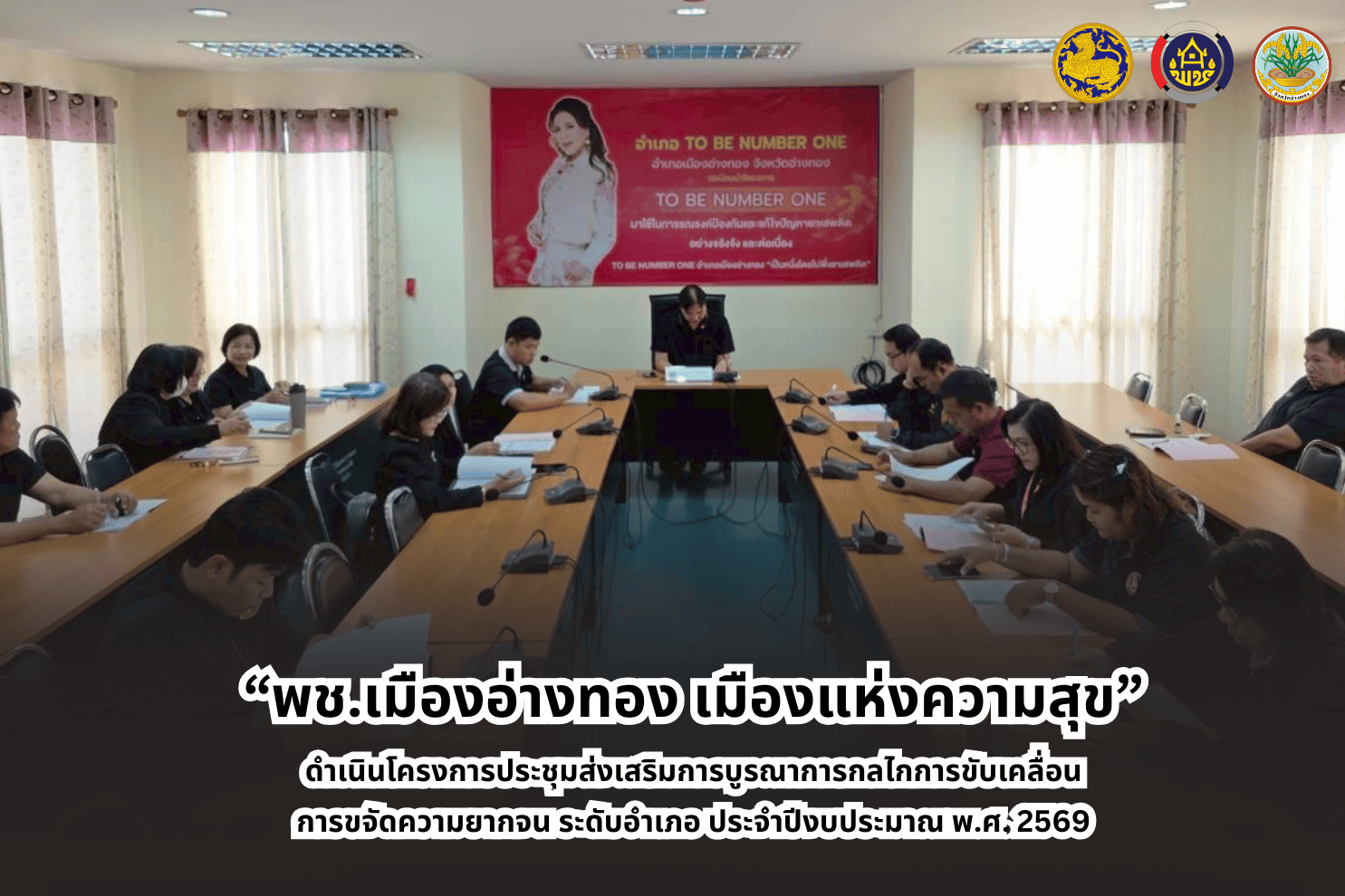 “พช.เมืองอ่างทอง เมืองแห่งความสุข” ดําเนินโครงการประชุมส่งเสริมการบูรณาการกลไกการขับเคลื่อนการขจัดความยากจน ระดับอําเภอ ประจําปีงบประมาณ พ.ศ. 2569